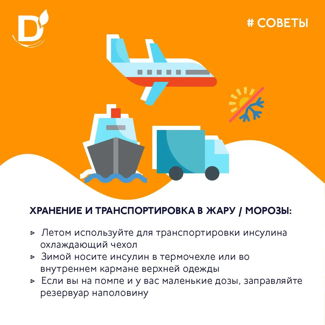 - Летом используйте для транспортировки инсулина охлаждающий чехол