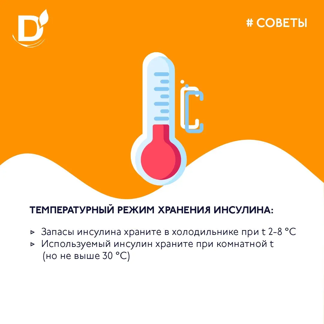 - Используемый инсулин храните при комнатной t (но не выше 30 °C)