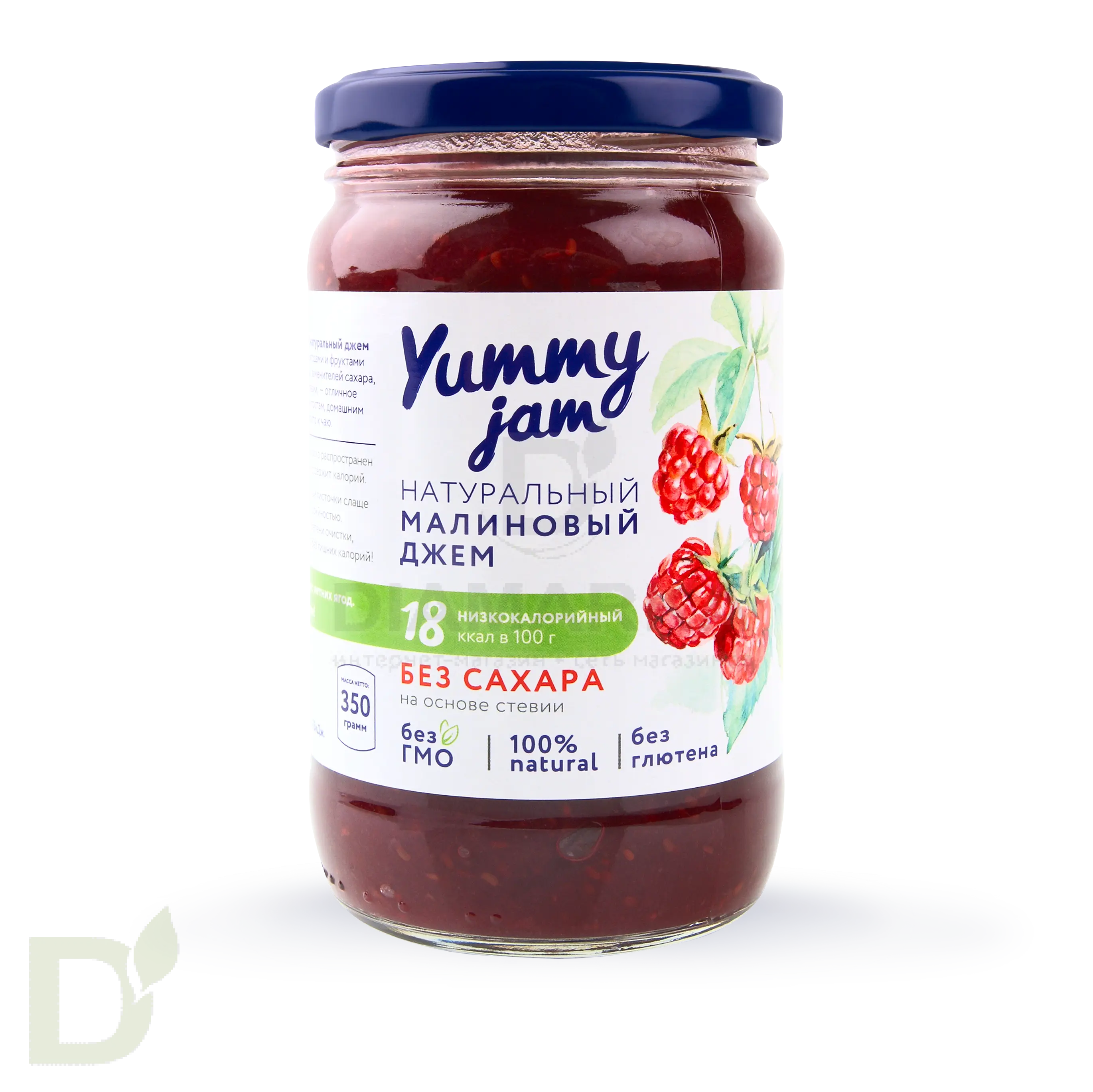 <h2>Натуральный джем без сахара, лишних углеводов и калорий</h2> Обычные джемы - это куча сахара и углеводов. А у нас припасены полезные джемы. Да-да, полезные: без лишнего сахара, калорий и химии.<br> <br> <h3>В поисках вкусного джема без лишних калорий?</h3> Джемы Yammy jam - это натуральные низкокалорийные джемы БЕЗ сахара! Подойдут тем, кто следит за фигурой, диабетикам, спортсменам и просто неравнодушным к сладкому.<br> <h3>Мы рекомендуем попробовать джемы Yammy jam, потому что</h3> <ul> <li>в них не содержится сахара</li> <li>в качестве подсластителя используются натуральные стевия и эритрит</li> <li>джемы обладают умеренно сладким вкусом натуральных ягод и фруктов</li> <li>калорийность джема минимальна - всего 18 ккал!</li> </ul> <h4>Куда добавить джем?</h4> Каша, йогурты, творог, тосты, печенья, домашняя выпечка и куча других блюд заиграют новыми красками, если добавить в них пару ложек низкоуглеводного джема! А еще его можно стрескать просто так: ложкой из банки.<br> <h4>Состав джема Yammy jam Малина</h4> вода, малина, эритрит, пектин, КМЦ (клетчатка), лимонная кислота, экстракт стевии, сорбиновая кислота.<br> <h4>Пищевая и энергетическая ценность на 100 грамм</h4> белки - 0;<br> жиры - 0;<br> углеводы - 19 г,<br> 18 ккал/75 кДж.