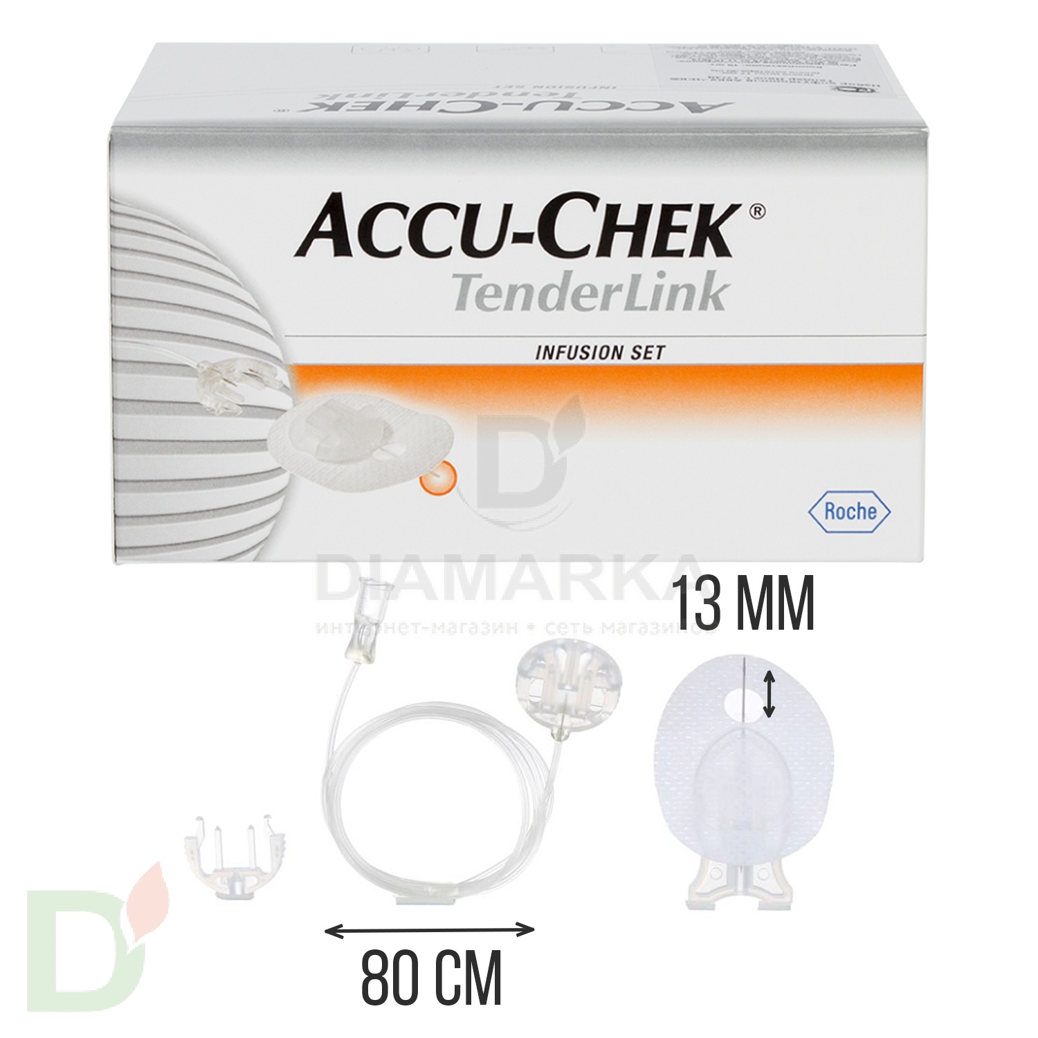 Инфузионный набор Акку-Чек ТендерЛинк 13/80 - состоит из иглы длиной 13 мм и катетера длиной 80 см. Они изготовлены из мягкого тефлона и находятся в индивидуа