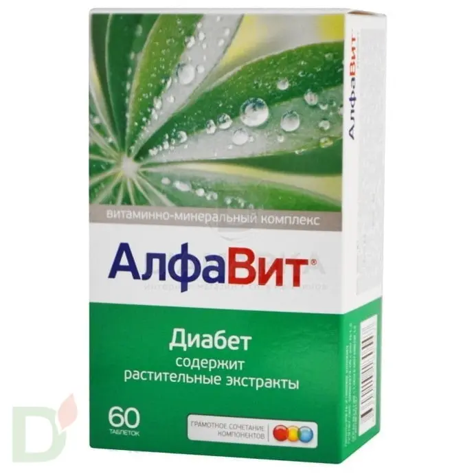 Витамины АлфаВит Диабет содержат 13 витаминов , 9 минералов, органические кислоты, растительные экстракты.