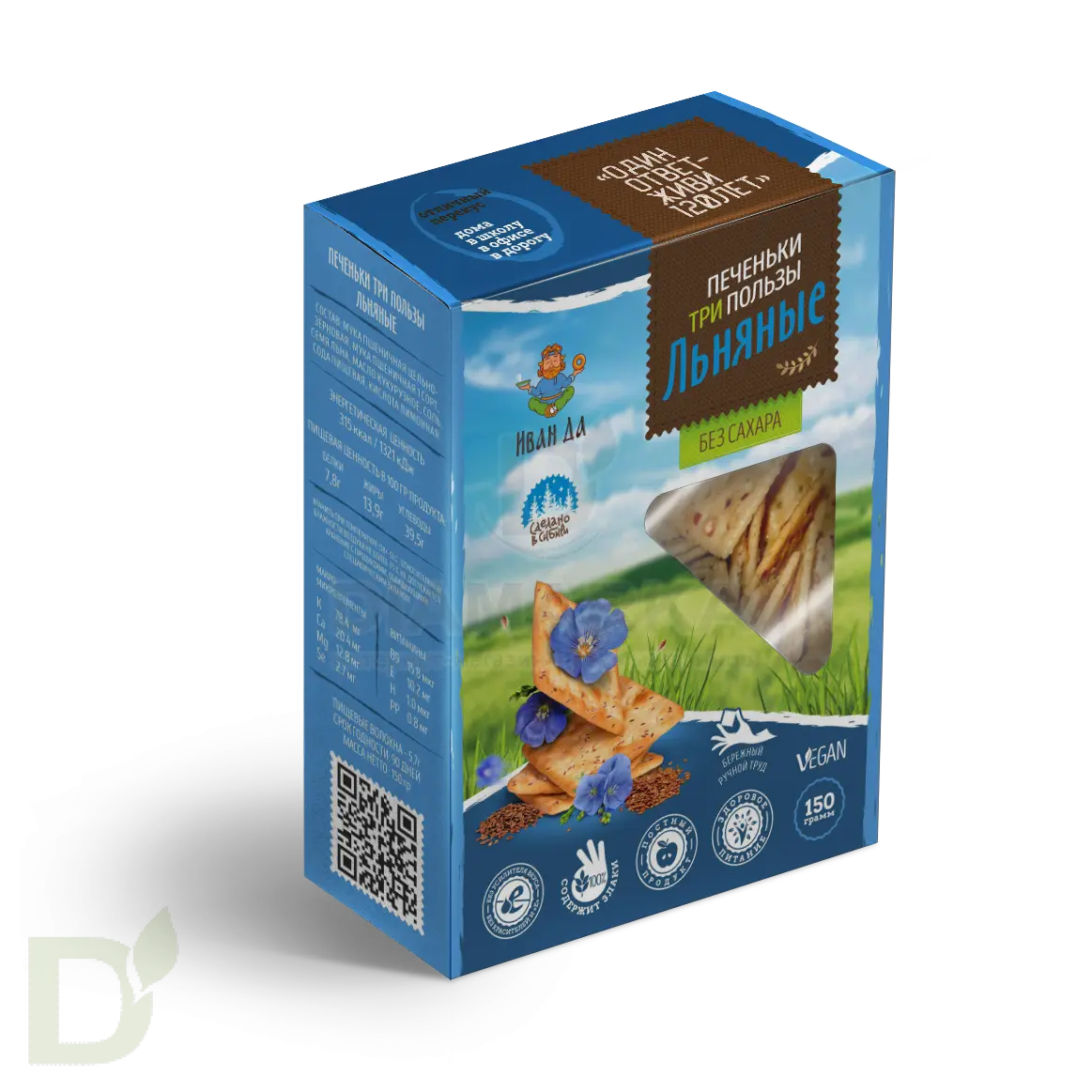 Компания Иван-ДА производит оригинальные и уникальные продукты, которые на все 100% соответствуют принципам здорового питания. Сырье для продукции проходит тщательный отбор, а в составе вы не найдете синтетических компонентов: все изготовлено исключительно с любовью и заботой о здоровье потребителя! Натуральность, уникальность и польза - вот главные ценности бренда.Хрустящее печенье с натуральным составом